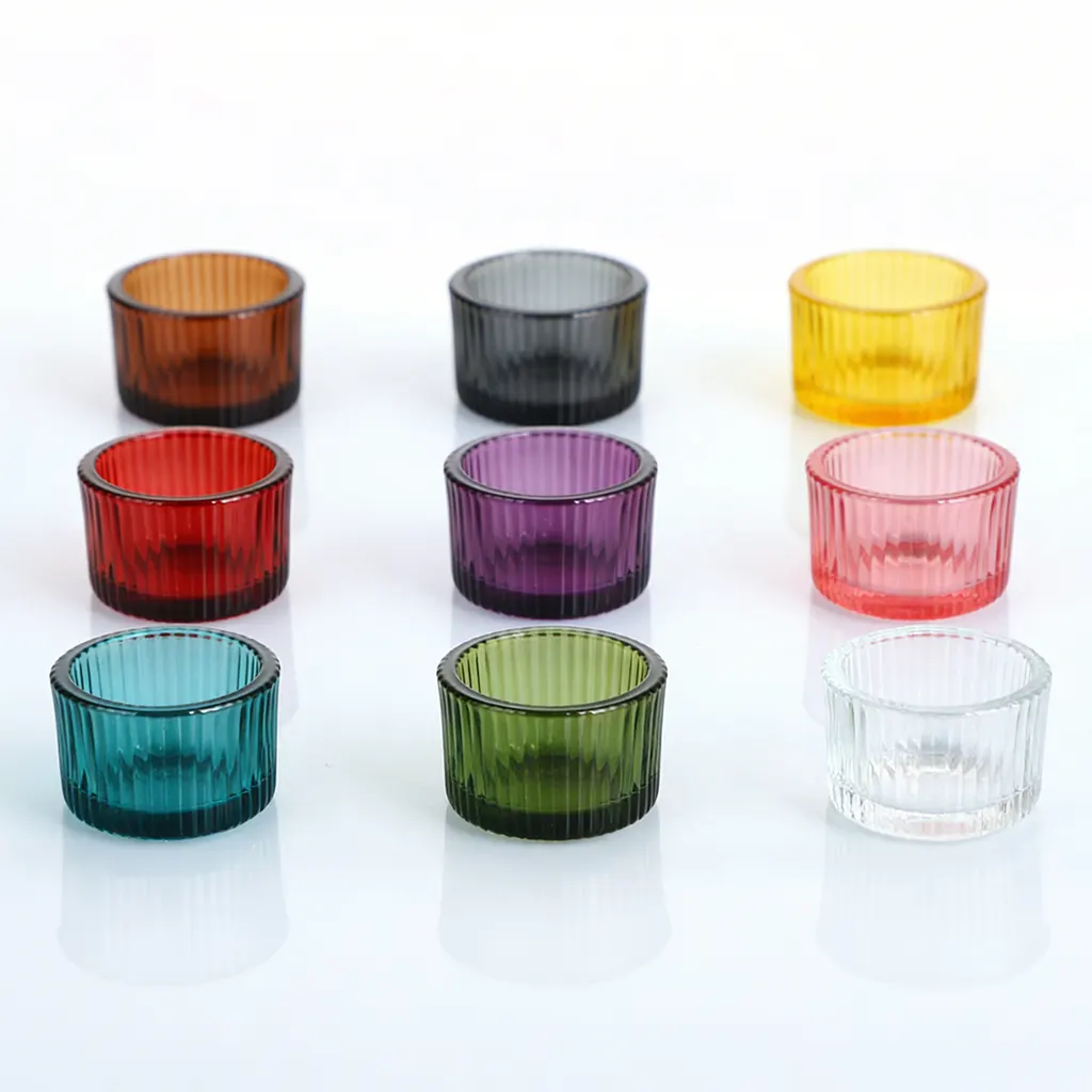 Diese kleinen, farbigen Glaskerzenbehälter sind rund, weithalsig und mit vertikalen Rillen versehen, die für einen besseren Halt sorgen und zudem optisch ansprechend sind. Die Behälter werden maschinell gepresst, was eine gleichbleibende Qualität und Langlebigkeit gewährleistet. Die kleinen 42-ml-Behälter sind vielseitig einsetzbar und eignen sich für Teelichter, Duftproben, Geschenksets und auch als Dekoration. Sie sind in verschiedenen leuchtenden Farben wie Rot, Blau, Gelb und Transparent erhältlich und werden häufig im Großhandel mit Kerzengläsern an Einzelhändler, Eventplaner und für Werbeverpackungen geliefert.