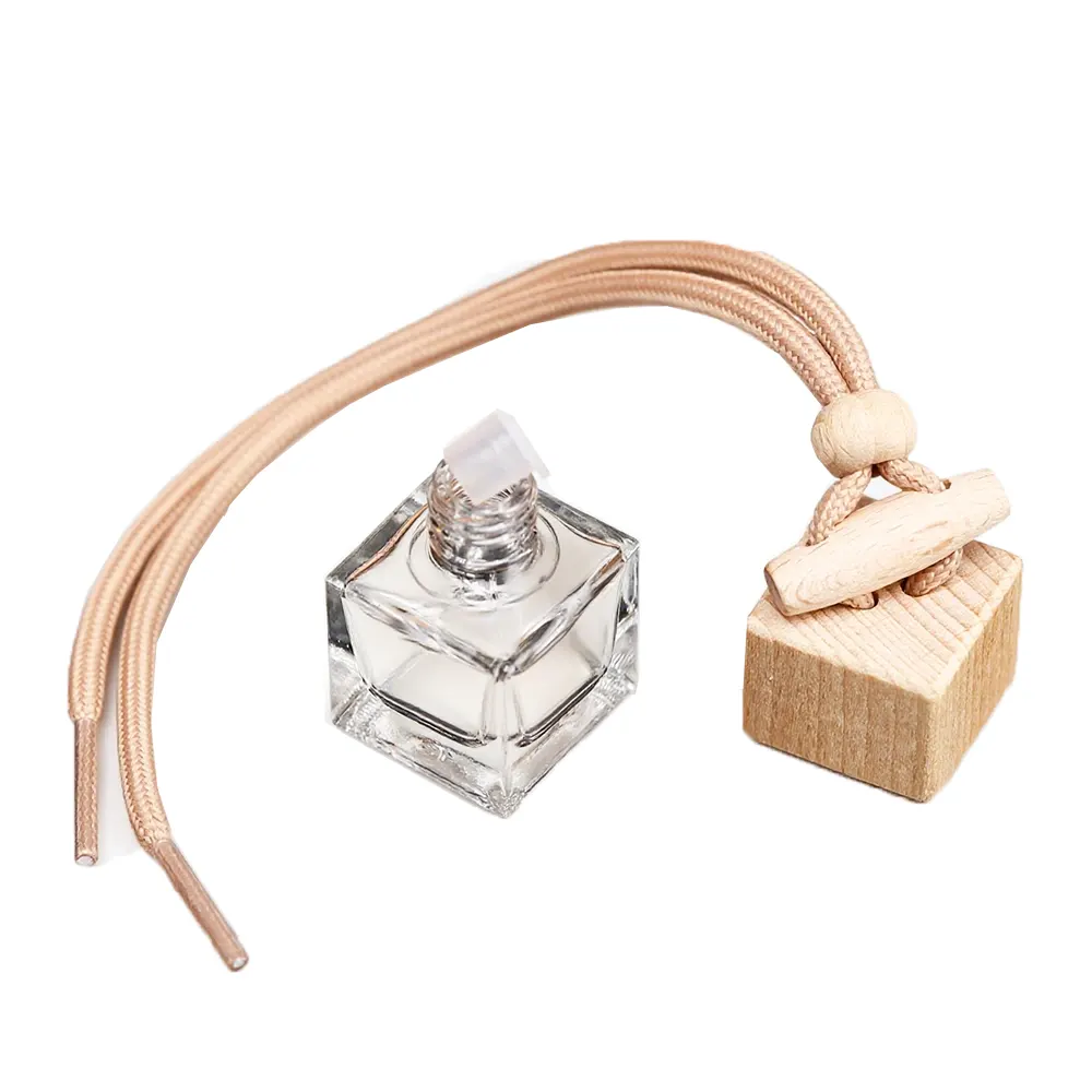 Unsere leeren Autodiffusor-Flaschen bieten mobile Dufterlebnisse. Mit ihrem transparenten, quadratischen Glaskörper sind sie kompakt und elegant – perfekt für unterwegs. Ein Holzverschluss verschließt die Flasche, und eine flexible Schnur verbindet sie mit der Flasche und macht sie so zu einem hängefertigen Gerät.