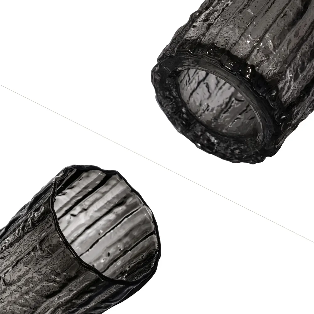 Unsere Serie strukturierter Glasvasen wurde von einer kanadischen Lifestyle-Marke in ihre Wohnaccessoires-Kollektion aufgenommen. Das Produkt zeichnet sich durch ein zweifarbiges Farbverlaufsfinish aus, bei dem die Grundfarbe leicht abgedunkelt, die obere Hälfte jedoch hell bleibt. Dadurch erhalten die Vasen eine ansprechende optische Tiefe. Für einen sicheren Stand sorgen rutschfeste Silikonringe an den Vasenfüßen.