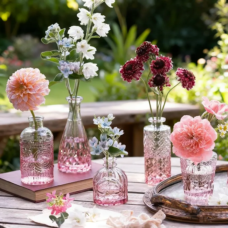 Hand-embossed glass vintage vases & glass short vase set. Custom color options. Wholesale for weddings, home decor. Perfect floral arrangements, no fuss. Shop now!