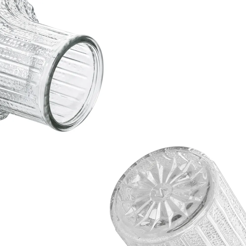 透明度の高いガラスで作られたエレガントな花瓶です。波模様のエンボス加工が施されたテクスチャードガラスの花瓶は、モダンなインテリアにヴィンテージな魅力を添えます。無料サンプルもご用意しております。
