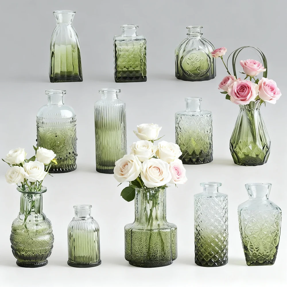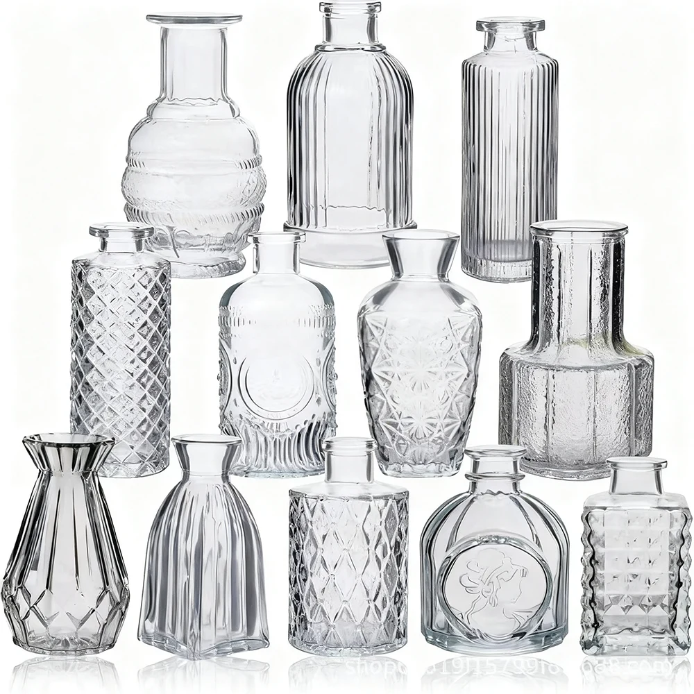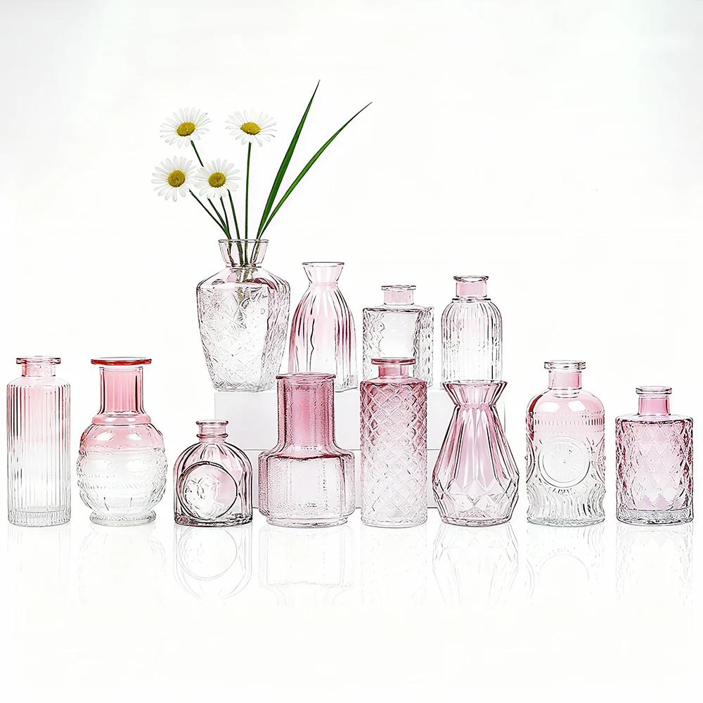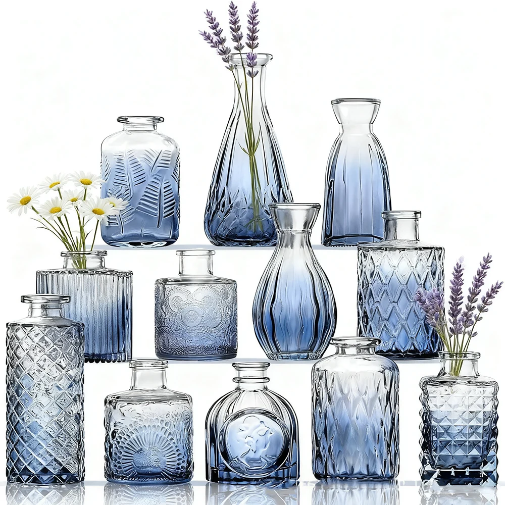 A floral designer in Portland used this bud vases set of 12 to style a rustic-chic wedding. She arranged them down a long wooden table, mixing fresh eucalyptus with single pink peonies in each bud vase. The texture of the ribbed and patterned glass caught the candlelight beautifully. Guests thought the display was custom-made—no one guessed it was a ready-to-use flowers vase set. She later told us: “It gave me high-end elegant results without the custom price tag.”
