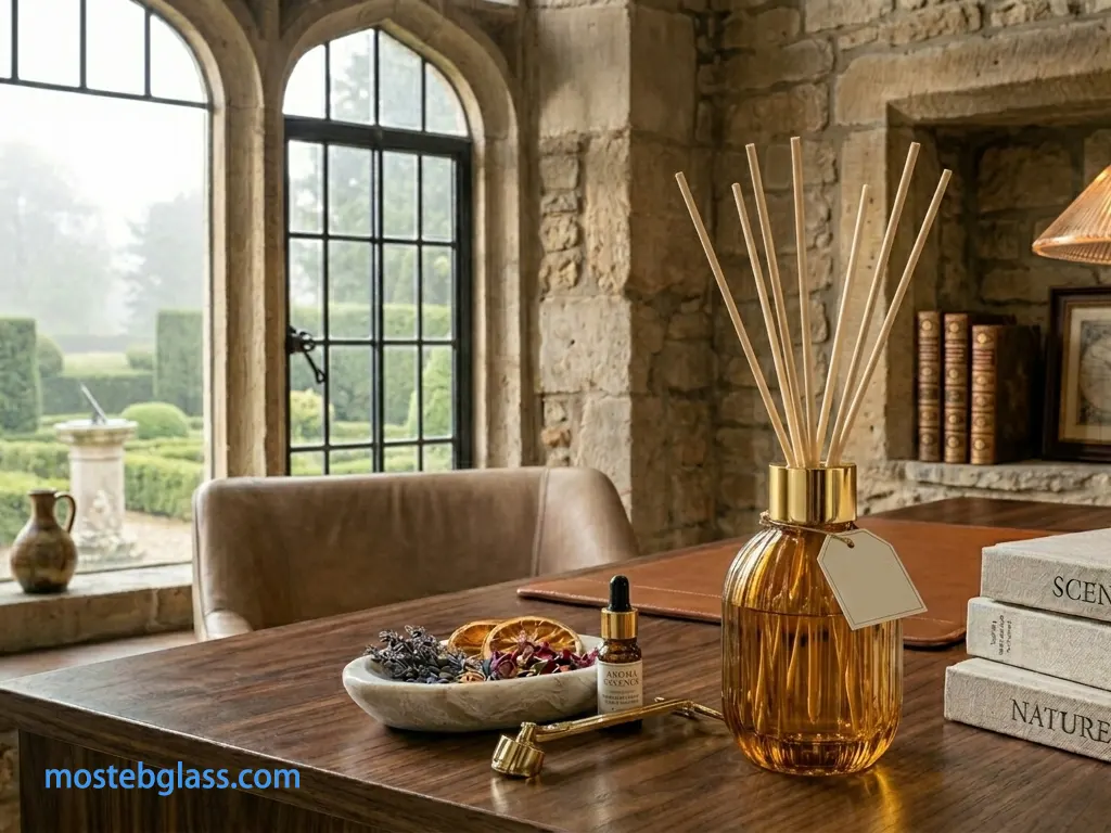 Een geuronderzoeksbureau gevestigd in Manchester, Verenigd Koninkrijk, dat gespecialiseerd is in geurformulering en producttesten voor huisparfummerken, heeft om hulp gevraagd bij het ontwerpen van verpakkingen op maat. MostebAls exporteur van decoratieve diffuserflessen heeft Mosteb in samenwerking met de klant een transparante glazen diffuserfles van 150 ml ontworpen met een zachte, matte kleurovergang, een subtiel gebogen cilindrische vorm en een natuurhouten stop die geschikt is voor standaard rietjes.