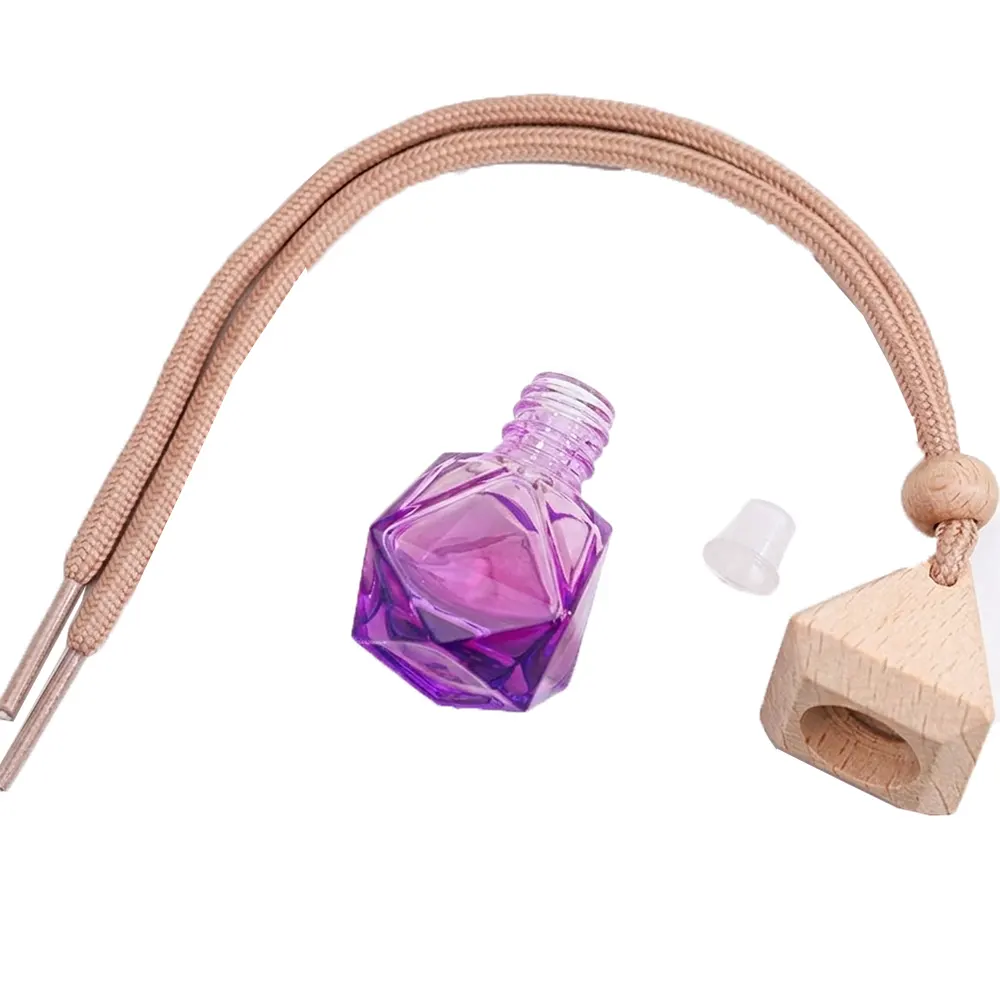 Este elegante difusor para carro vem em um frasco de vidro facetado em formato de diamante que irradia um brilho deslumbrante. Sua capacidade compacta de 8 ml complementa qualquer carro. A tampa de madeira com várias camadas e o cordão colorido adicionam um toque de charme.