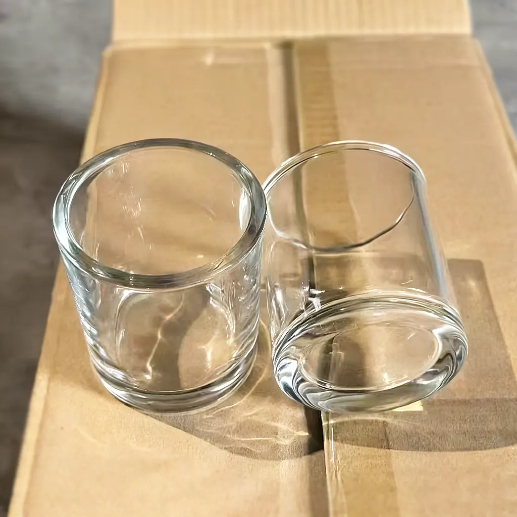 Premium small votive candle holders in 275ml clear glass. Durable glass candle jars for wholesale and bulk candle brands, with custom color, lid, and logo options.