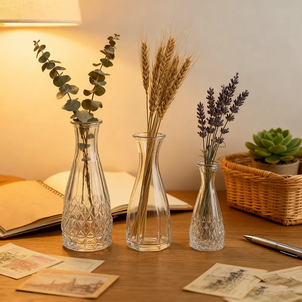 Stop using boring vaseglassdecorative pieces that kill your floral vibe. We craft short bud vases with geometric texture—no more flat decor. These short glass vase sets turn your space into a floral dream. Bulk orders get custom glass vases to match your brand’s soul.