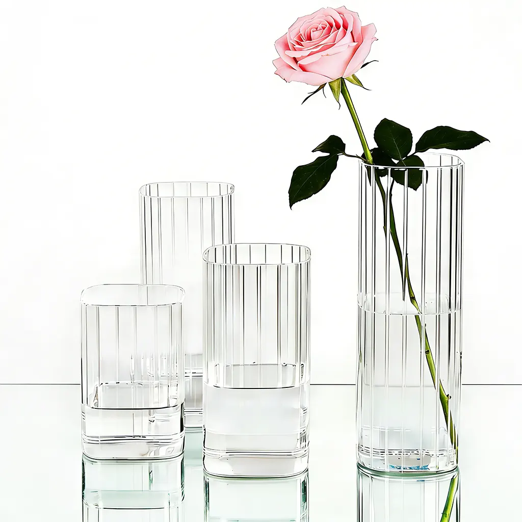 A US distributor wholesaled dozens of vases, mostly round or plain. Later, they introduced this set of square vases with a vertical stripe pattern. Florists didn’t initially take notice. But then a boutique tried them as wedding centerpieces. They filled the 15cm-tall vases with white ranunculus—the wavy pattern made the petals shimmer in candlelight. The photos went viral, and so did orders. Within a few months, orders tripled. The reason? Because these glass vases looked expensive in photos and felt premium in the hand.